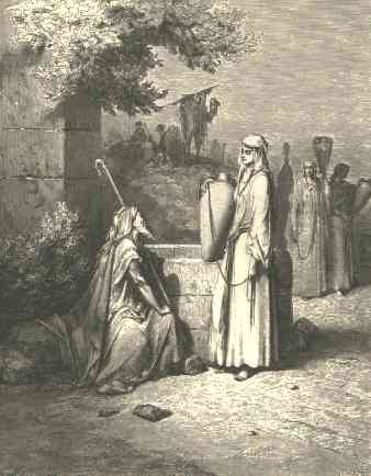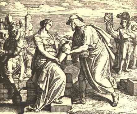 45 | And before I had done speaking in mine heart, behold, Rebekah came forth with her pitcher on her shoulder; and she went down unto the well, and drew water: and I said unto her, Let me drink, I pray thee. |