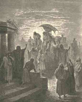 13 | Behold, I stand here by the well of water; and the daughters of the men of the city come out to draw water: |