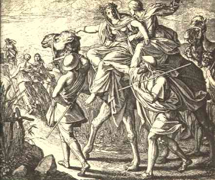 61 | And Rebekah arose, and her damsels, and they rode upon the camels, and followed the man: and the servant took Rebekah, and went his way. |