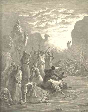 6 | Behold, I will stand before thee there upon the rock in Horeb; and thou shalt smite the rock, and there shall come water out of it, that the people may drink. And