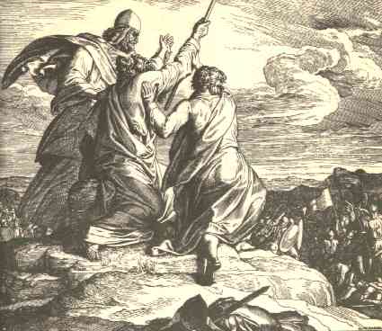 10 | So Joshua did as Moses had said to him, and fought with Amalek: and Moses, Aaron, and Hur went up to the top of the hill. |