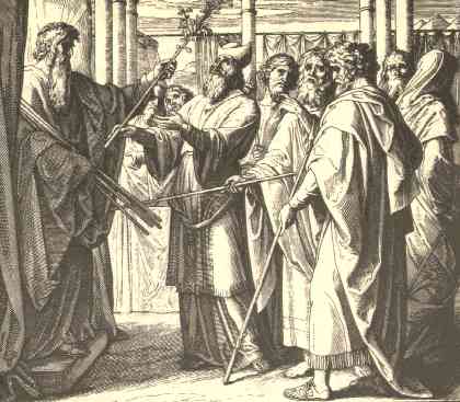 6 | And Moses spake unto the children of Israel, and every one of their princes gave him a rod apiece, for each prince one, according to their fathers' houses, even twelve rods: and the rod of Aaron was among their rods. |
