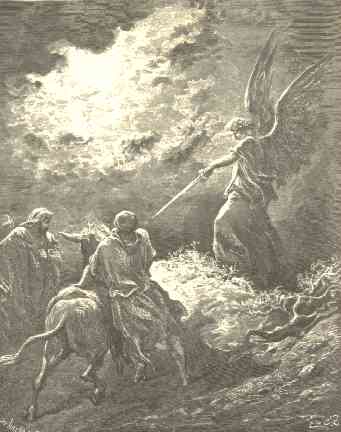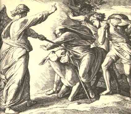 32 | And the angel of the LORD said unto him, Wherefore hast thou smitten thine ass these three times? behold, I went out to withstand thee, because thy way is perverse before me: |