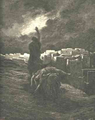 29 | And when he was come into his house, he took a knife, and laid hold on his concubine, and divided her, together with her bones, into twelve pieces, and sent her into all the coasts of Israel. |