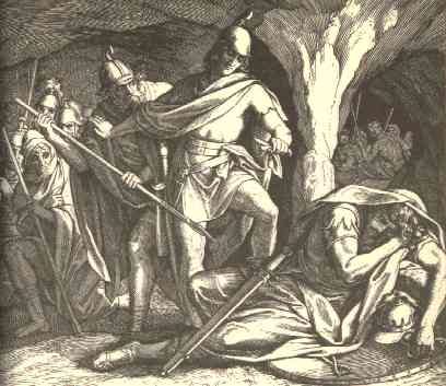 7 | So David stayed his servants with these words, and suffered them not to rise against Saul. But Saul rose up out of the cave, and went on his way. |