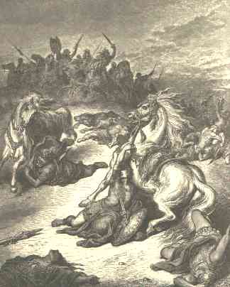 1 | Now the Philistines fought against Israel: and the men of Israel fled from before the Philistines, and fell down slain in mount Gilboa. |