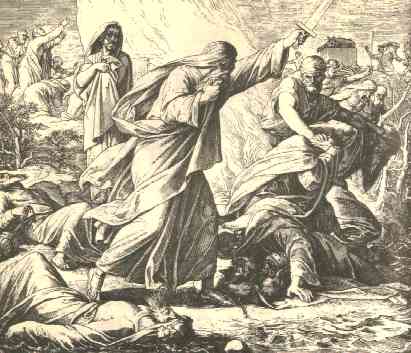 38 | Then the fire of the LORD fell, and consumed the burnt sacrifice, and the wood, and the stones, and the dust, and licked up the water that was in the trench. |