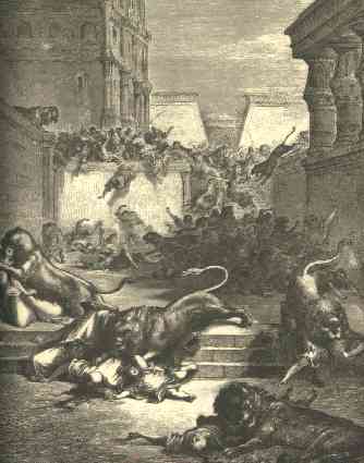 25 | And so it was at the beginning of their dwelling there, that they feared not the LORD: therefore the LORD sent lions among them, which slew some of them. |