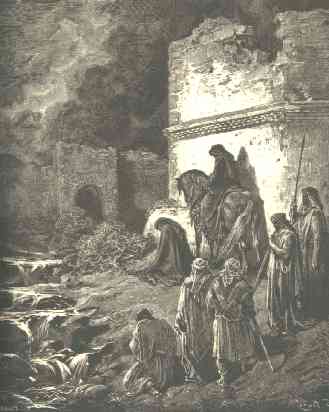 13 | And I went out by night by the gate of the valley, even before the dragon well, and to the dung port, and viewed the walls of Jerusalem, which were broken down, and the gates thereof were consumed with fire. |