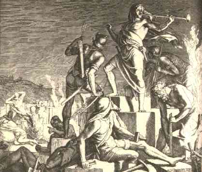 18 | For the builders, every one had his sword girded by his side, and so builded. And he that sounded the trumpet was by me. |