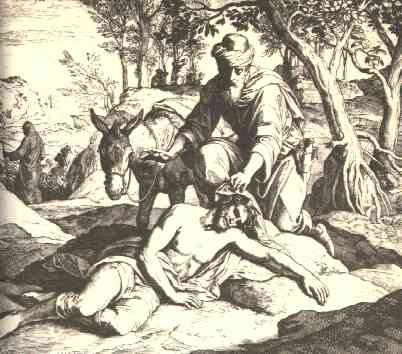 30 | And Jesus answering said, A certain man went down from Jerusalem to Jericho, and fell among thieves, which stripped him of his raiment, and wounded him, and departed, leaving him half dead. |