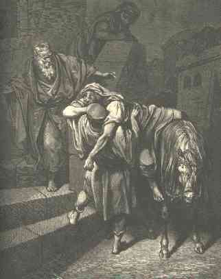 35 | And on the morrow when he departed, he took out two pence, and gave them to the host, and said unto him, Take care of him; and whatsoever thou spendest more, when I come again, I will repay thee. |